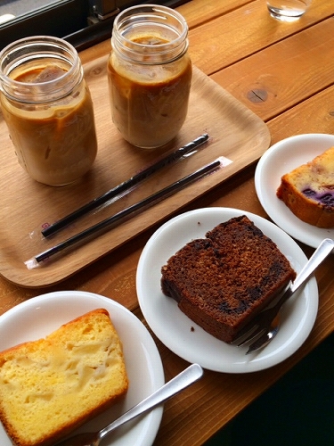 この日は、カフェラテとパウンドケーキを欲張って3種類注文。