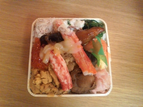 海鮮弁当とイカ飯の中身がじゃがいもになっているものを購入しました。