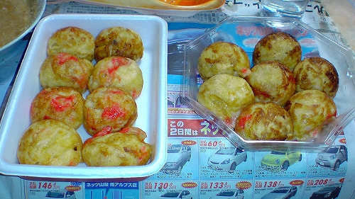 たこ焼き 先日旦那さんの同僚の方の家で、たこ焼きパーティーがありました。前にあった時に旦那さんがおいしかったと言っていたので、今回お願いして、私の分のお土産いただいちゃいました。ホットプレートなどに今ではたこ焼きのプレートが付いていたりしますがこちらの方は本格的。屋台などで使っているガスで焼くタイプのたこ焼き器です。具や生地などにもこだわりがあり、かなり美味いらしいのです。これを聞いたらやっぱり食べたくなるので・・・お土産の話も快諾してくれました。見た目も味もサイコーでした。次回は、出来立てを食べたいので、参加させてもらおうかな!?なんてたくらんでいます。 2010年5月20日(Thu)|食べ物|くくる