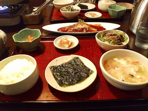 韓国料理 またまた、岡谷にある眞礼という韓国料理店に行ってきました。行く度に、ビピンパを食べていたので今回は違う物を食べてきました。ダッカルビ定食とサンギョプサル定食、それにトッポキを食べました。トッポキダッカルビサンギョプサル(鉄板で焼いて、サニーレタスに包んで食べます)定食につく、ご飯とキムチと韓国のりと中華スープとお豆腐お土産に、キムチとオイキムチを買って帰りました。どれを食べても、ここの料理は美味しいです。山梨からでもそんなに遠くないですし、このブログをお読みの皆さんもおいしそうだなぁと思ったら、食べに行ってみてくださいね。 2010年10月13日(Wed)|食べ物|くくる