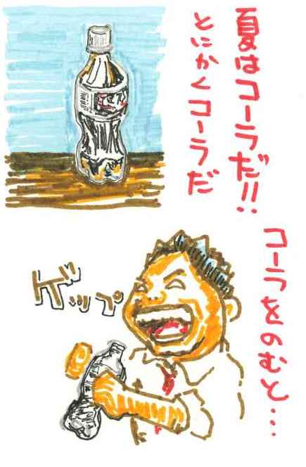 コーラ コーラが好きです。タバコ吸わない。酒もたしなむ程度。その分を補うぐらい夏はコーラ飲んでます。コーラを飲むと「ほっ」とします。カフェイン中毒なのでしょうか?コーラを飲むと健康に悪いといわれていましたが、新しく出た新商品はビタミン入り。コーラを選んでも太らないし健康。素晴らしい。早く体脂肪に効くコーラでてこい。関係者の方お願いします。 2008年7月8日(Tue)|食べ物|たわし