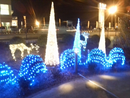 ラザウォークへ行ったら、トナカイなどのイルミネーションがありました。