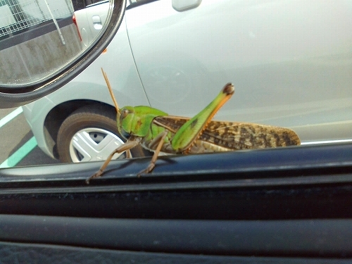 バッタ 駐車場に止めてあった車に乗り込んだときに何かが飛んできました。窓にバッタがとまり、びっくりしました。私は虫が大嫌いです。なので、車の外にいるとわかっていても、はやくどうにかしたくて、そっと車のドアを開け、思い切り閉めなおしました。バッタが飛んでいったのを見て、安心して家に帰りました。これから、虫が多くなる季節です。蚊に刺されただけでも、広範囲に腫れてしまいます。虫除けスプレーと、虫刺されの薬が必需品になるので、用意しておかなければ・・・ 2011年7月1日(Fri)|最近の出来事|くくる