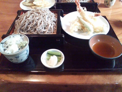 野菜てんぷらの付いたお蕎麦と、海老てんぷら付きのお蕎麦を頼みました。