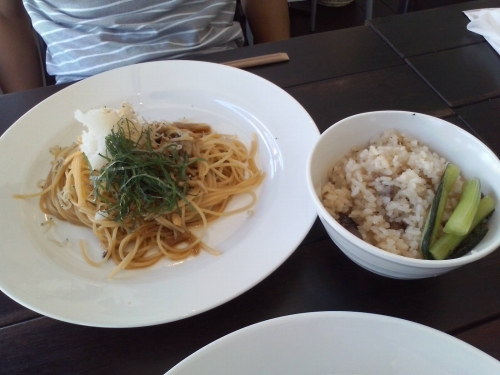 そして、旦那さんは和風おろしパスタと栗ご飯を頼んでました。