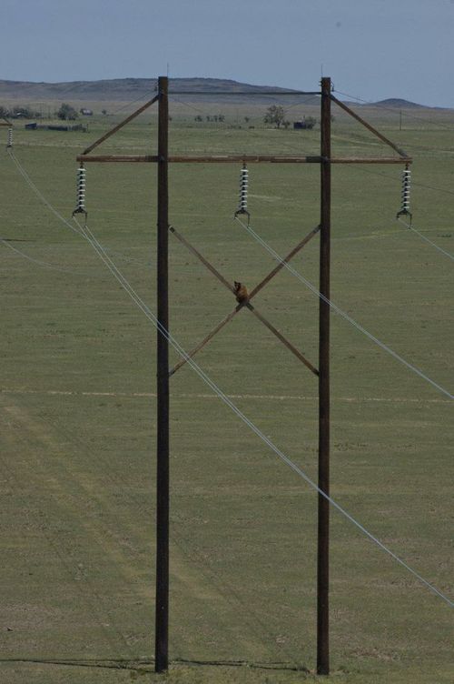 送電線のようですが、なぜ登っちゃったのか……。