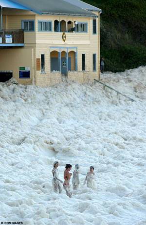 科学薬品、海藻類、分解した魚類などの腐敗物などが強力な海流により泡立てられたそうです。