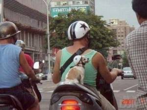 ちょっと無理やりバイクに乗せられています。