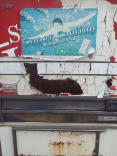 近くの使っていない自動販売機の塗装の剥がれ方が
