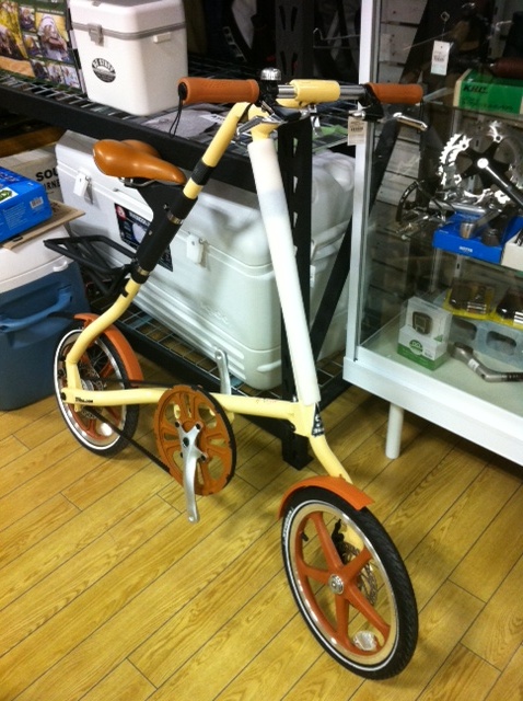 特徴として独特の三角フレームデザイン、小径タイヤを履いたベルト駆動