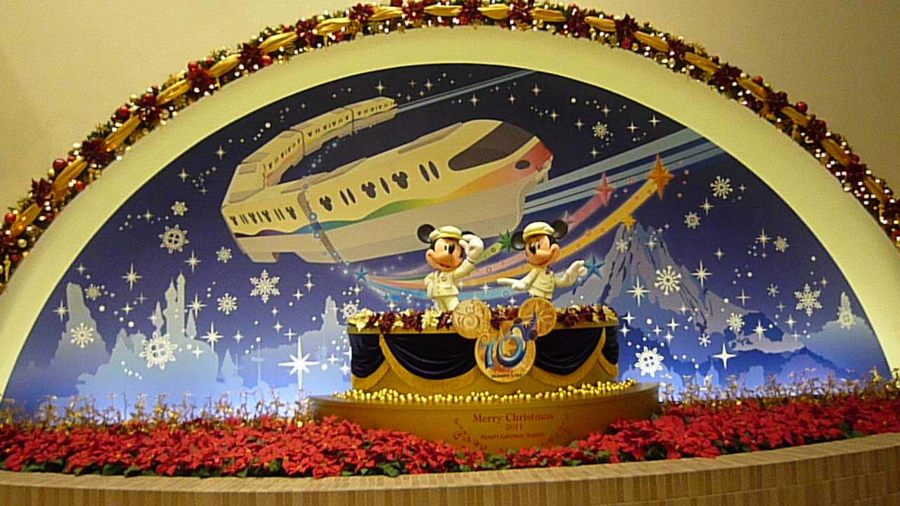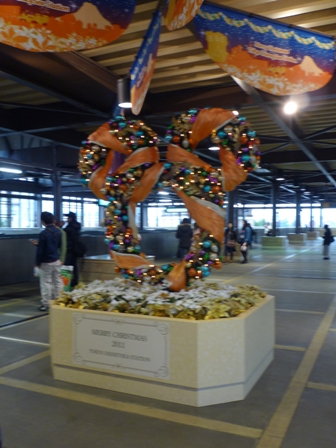 また各駅ではクリスマツリーやリース、10周年のモニュメントが飾られていました。
