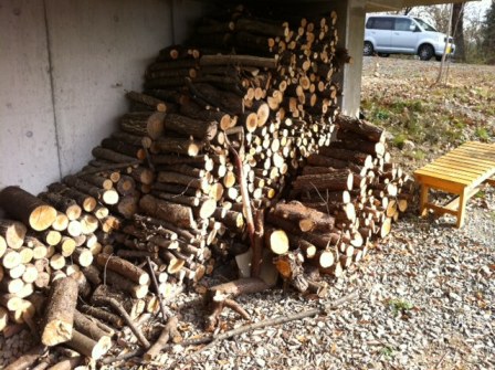 日野春の家のまきが高く積まれている様子を撮影しました。