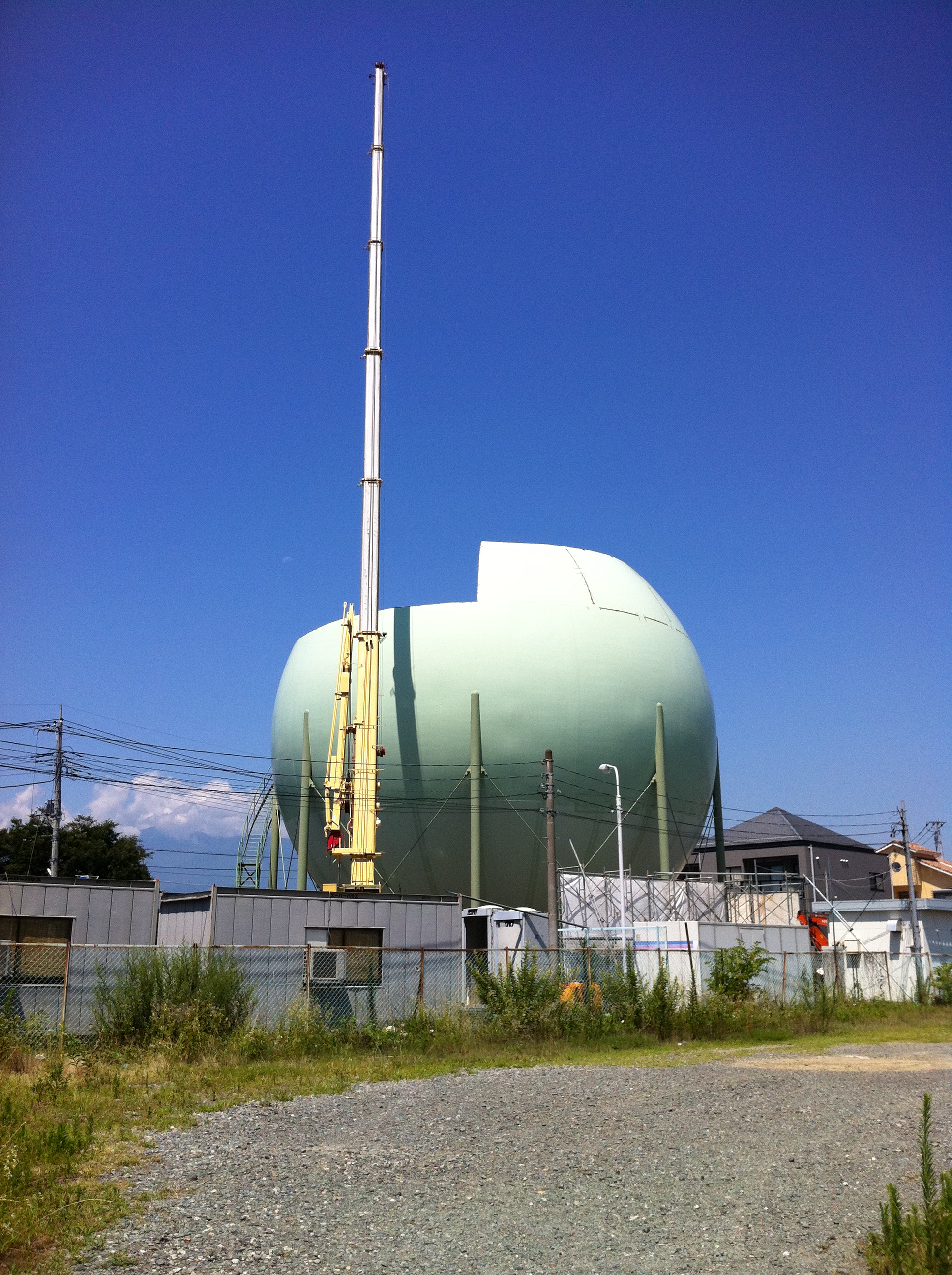 以前からあったガスタンクが解体されかけていました。