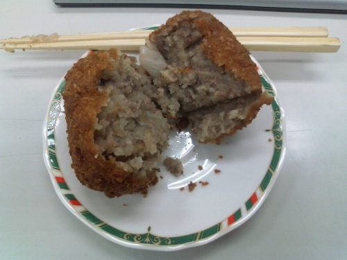 こんなに大きな(直径7〜8cmくらい)まんまるのコロッケが入っていました。