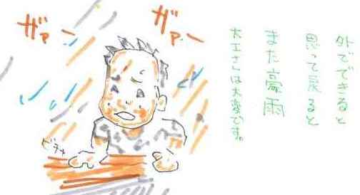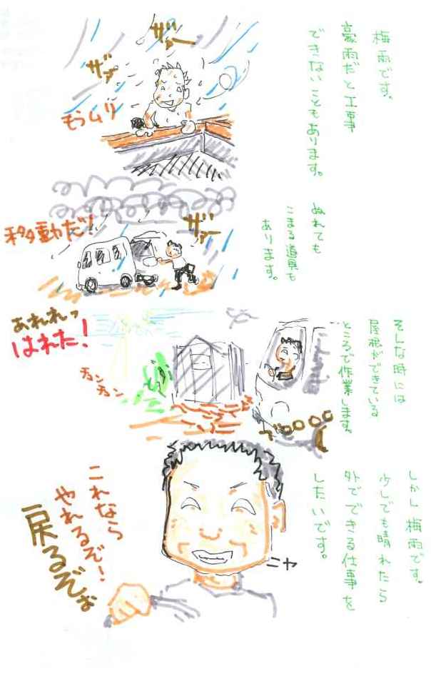 雨で作業できないので、完成間近の直しに戻ってきたところで会いました。