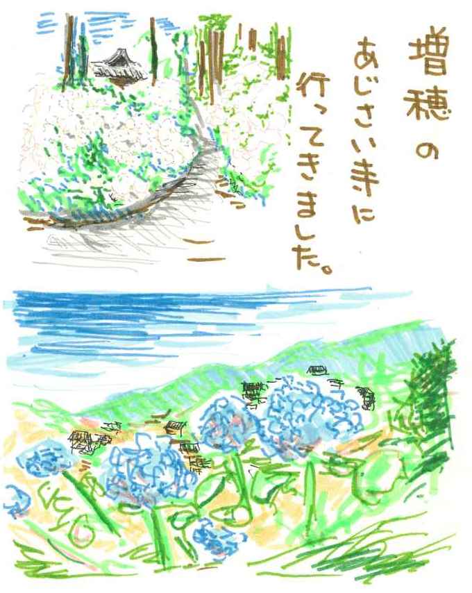 お寺だけでなく、近隣の家もアジサイがきれいで着く前から