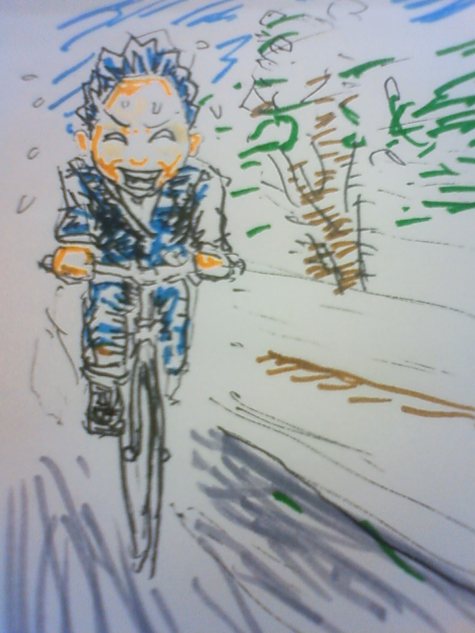 朝の渋滞をすりぬけて、最短距離を自転車こぎました。