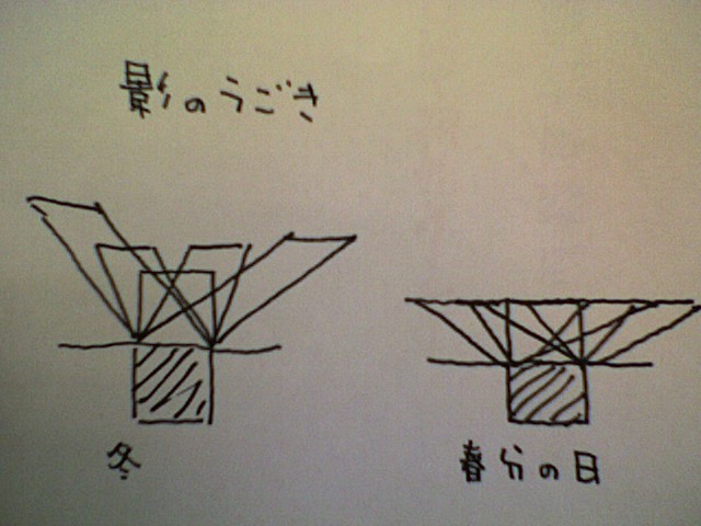 そして、右が春分の日の(秋分も)影の動きです。
