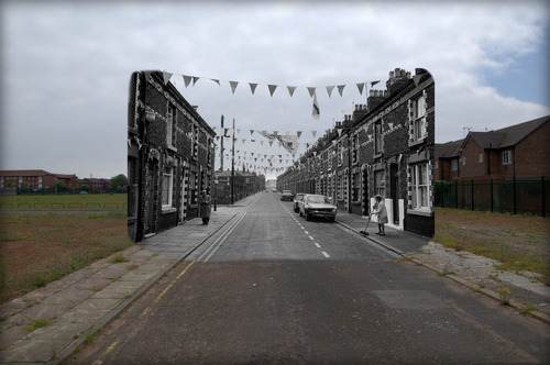 これは39年前の通りと現在の通りを重ね合わせた写真です。